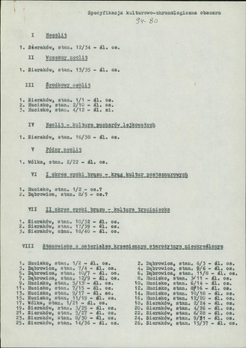 spis stanowisk wg numerów na obszarze