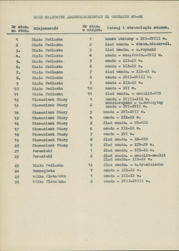 spis stanowisk wg numerów na obszarze