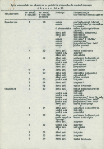 spis stanowisk wg numerów na obszarze