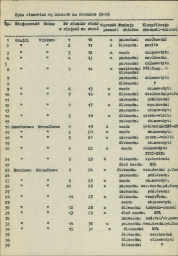 spis stanowisk wg numerów na obszarze