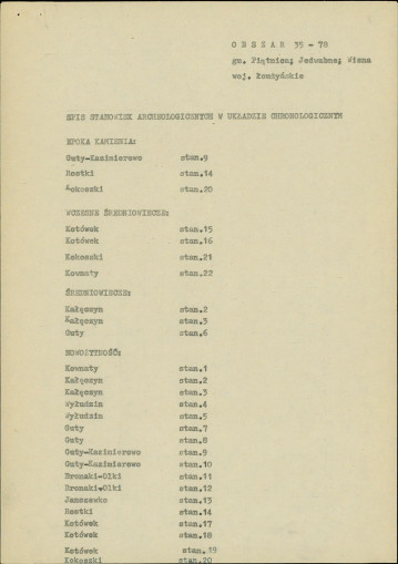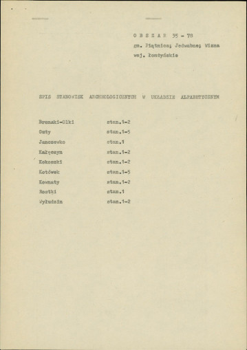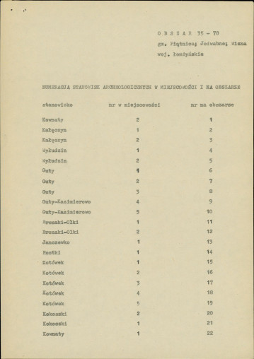 spis stanowisk wg numerów na obszarze