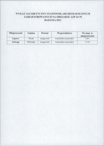 spis stanowisk wg numerów na obszarze
