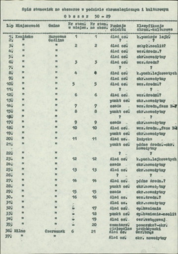 spis stanowisk wg numerów na obszarze