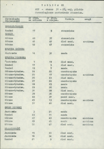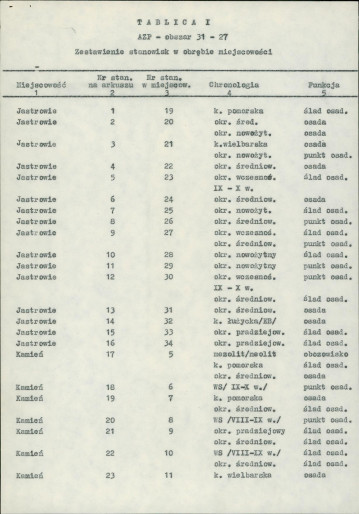 spis stanowisk wg numerów na obszarze