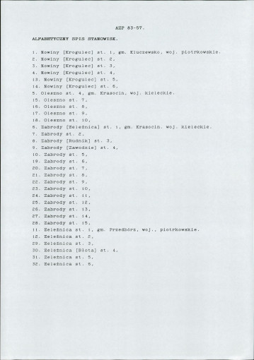 spis stanowisk wg numerów na obszarze