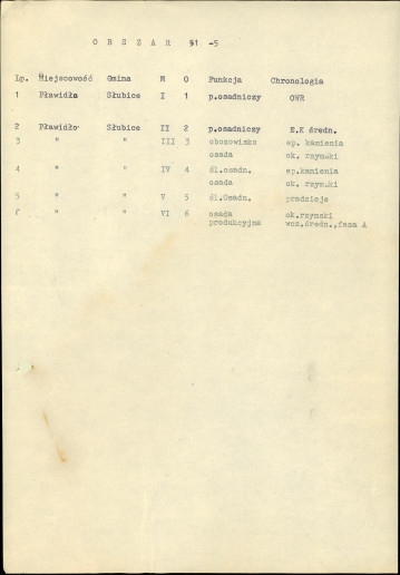spis stanowisk wg numerów na obszarze