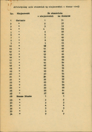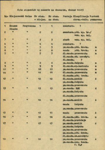 spis stanowisk wg numerów na obszarze
