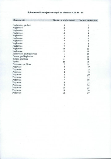 nob - spis stanowisk wg numerów na obszarze