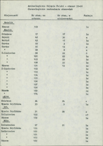 spis stanowisk wg numerów na obszarze