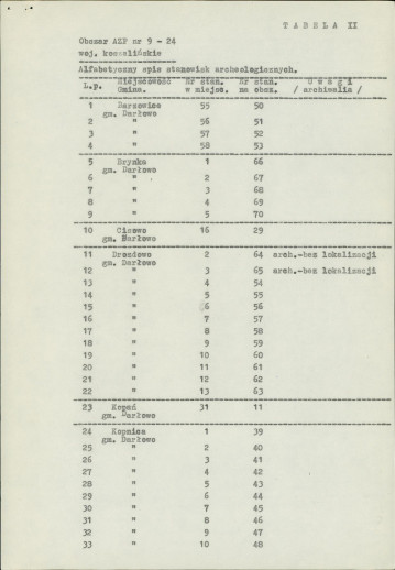 spis stanowisk wg numerów na obszarze