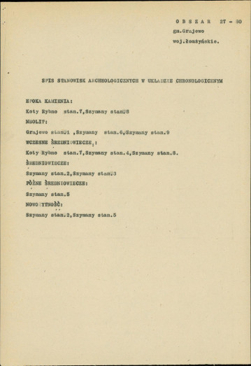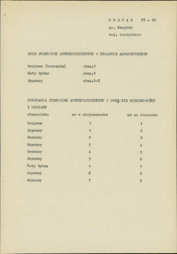 spis stanowisk wg numerów na obszarze