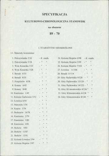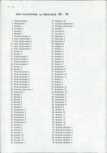 spis stanowisk wg numerów na obszarze