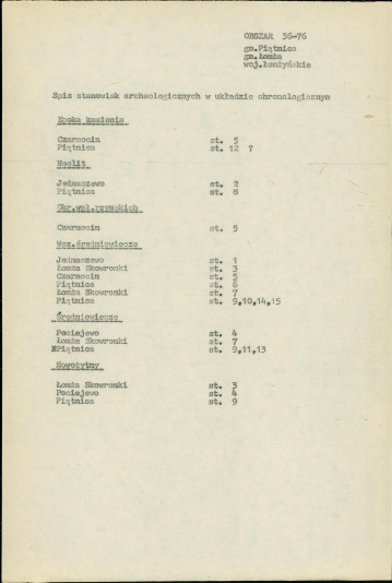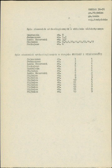 spis stanowisk wg numerów na obszarze