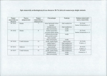 spis stanowisk, których numeracja uległa zmianie