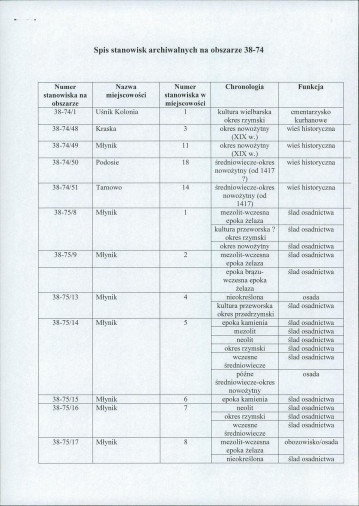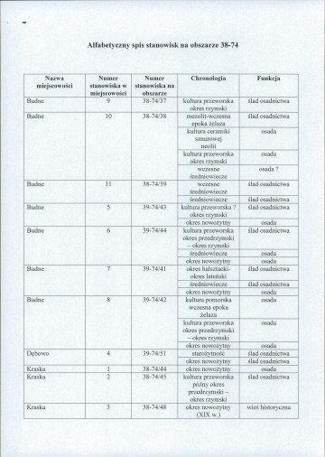 spis stanowisk wg numerów na obszarze