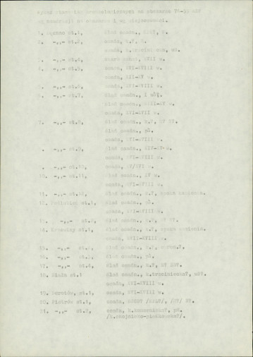 spis stanowisk wg numerów na obszarze