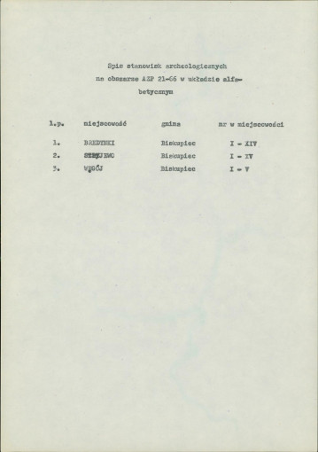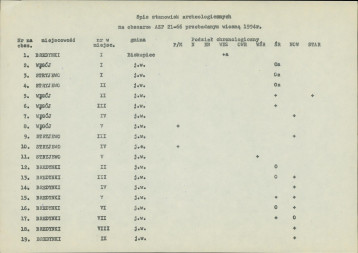 spis stanowisk wg numerów na obszarze