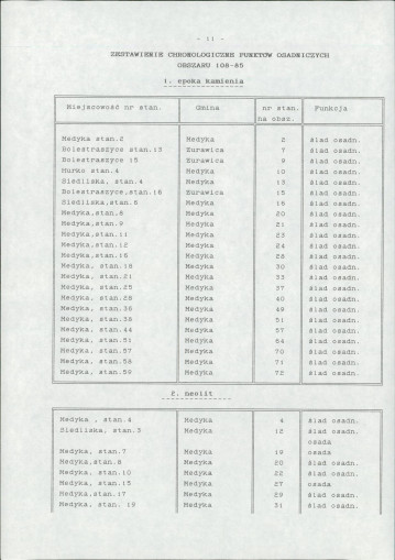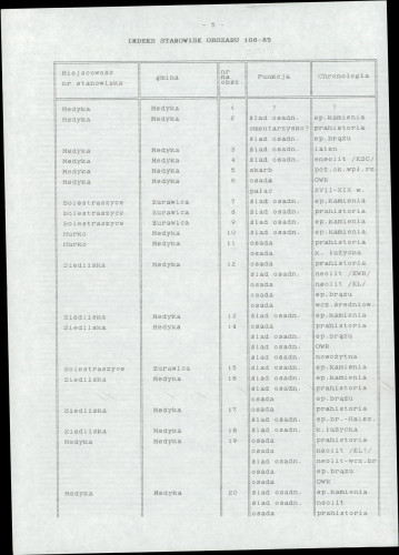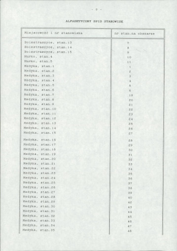 spis stanowisk wg numerów na obszarze