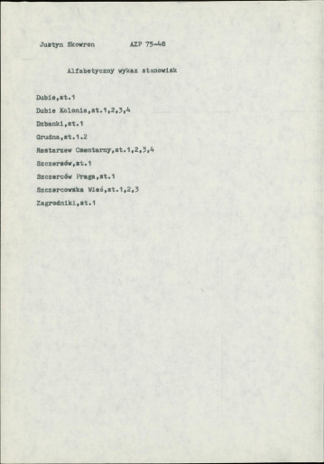 spis stanowisk wg numerów na obszarze