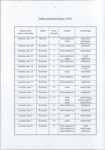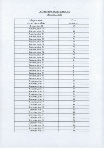 spis stanowisk wg numerów na obszarze