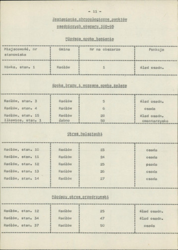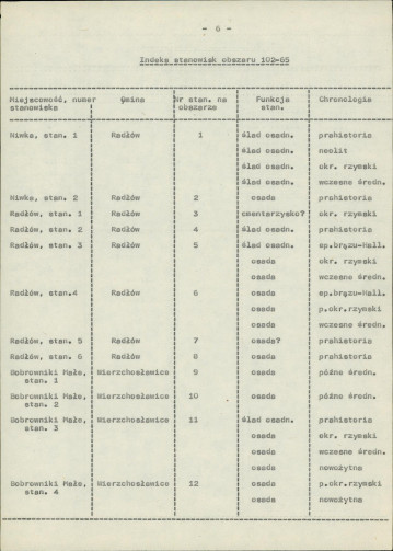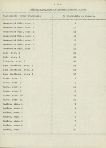 spis stanowisk wg numerów na obszarze