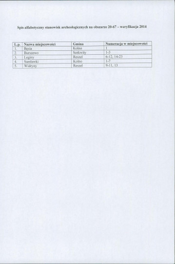 spis stanowisk wg numerów na obszarze