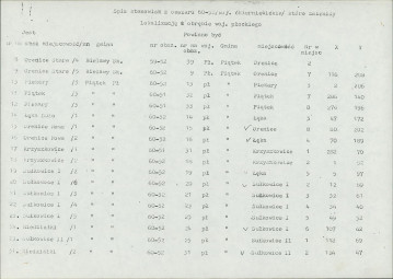 spis stanowisk wg numerów na obszarze