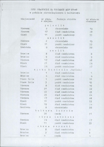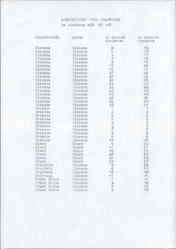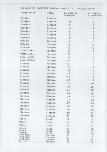 spis stanowisk wg numerów na obszarze