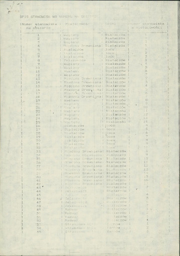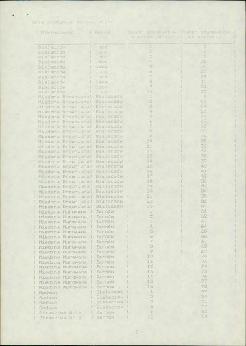 spis stanowisk wg numerów na obszarze