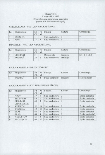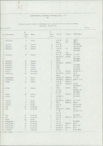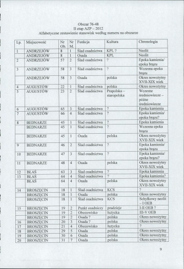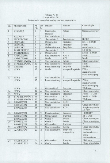 spis stanowisk wg numerów na obszarze