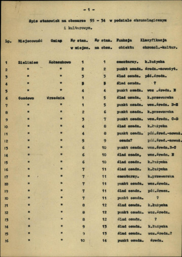 spis stanowisk wg numerów na obszarze