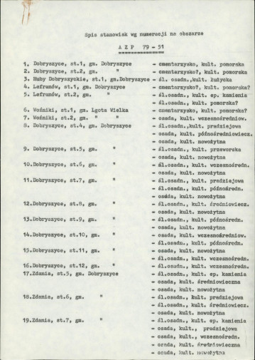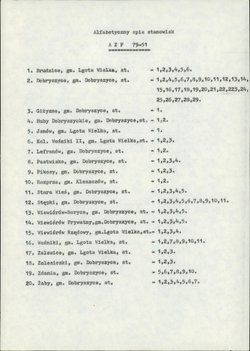 spis stanowisk wg numerów na obszarze