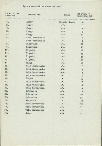 spis stanowisk wg numerów na obszarze