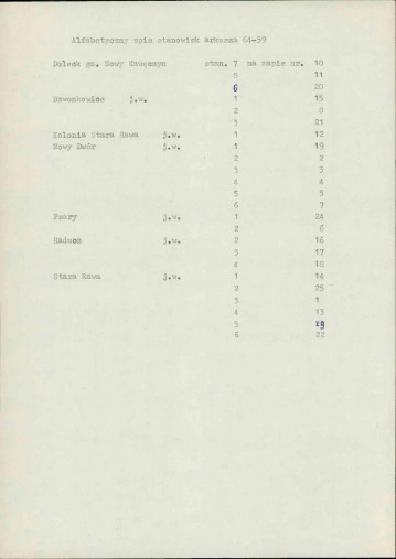 spis stanowisk wg numerów na obszarze