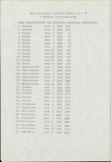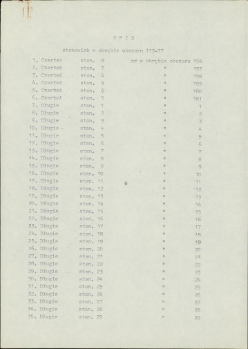 spis stanowisk wg numerów na obszarze