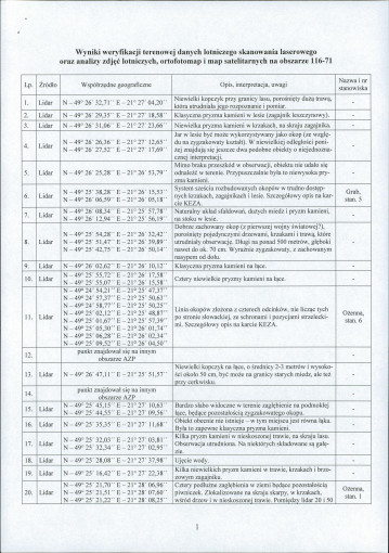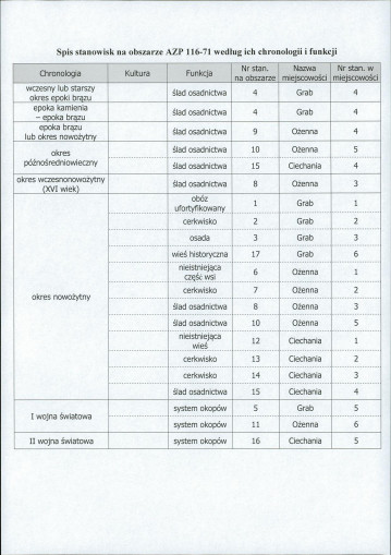 spis stanowisk wg numerów na obszarze