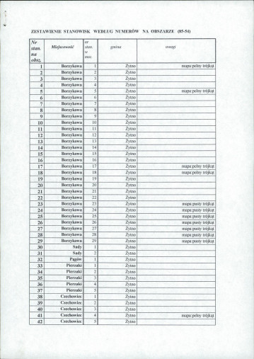 spis stanowisk wg numerów na obszarze