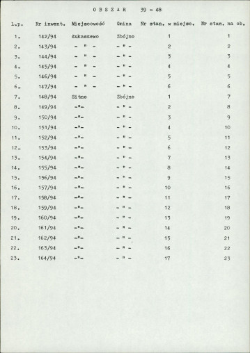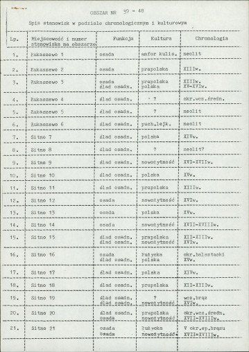 spis stanowisk wg numerów na obszarze