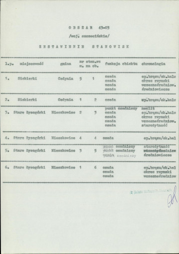 spis stanowisk wg numerów na obszarze
