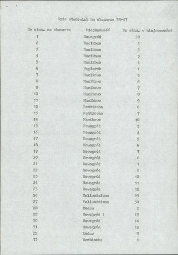spis stanowisk wg numerów na obszarze