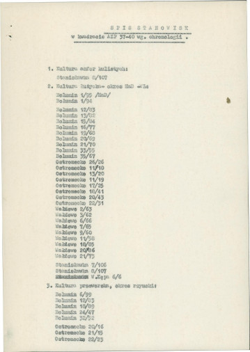 spis stanowisk wg numerów na obszarze