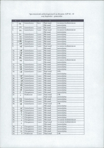 spis stanowisk wg numerów na obszarze