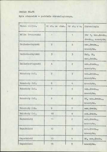 spis stanowisk wg numerów na obszarze