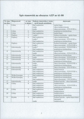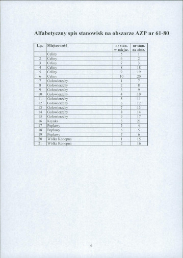 spis stanowisk wg numerów na obszarze