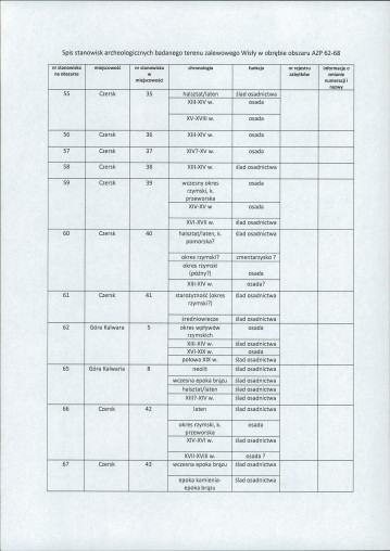 spis stanowisk wg numerów na obszarze