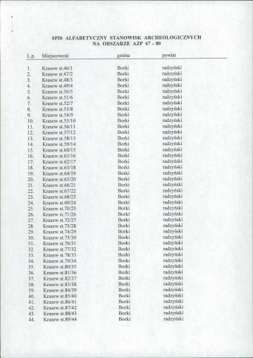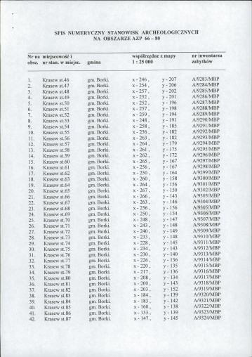 spis stanowisk wg numerów na obszarze