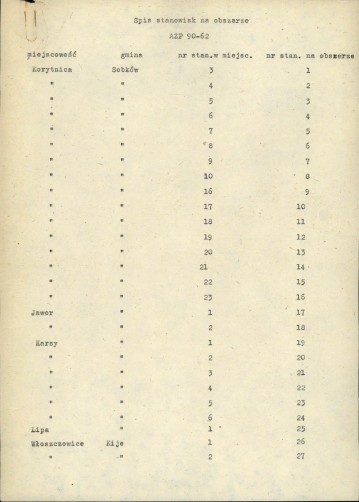 nob - spis stanowisk wg numerów na obszarze