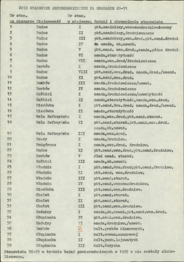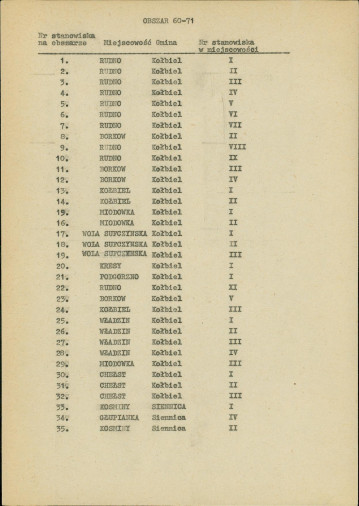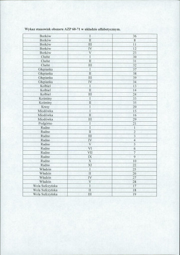 spis stanowisk wg numerów na obszarze