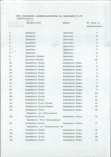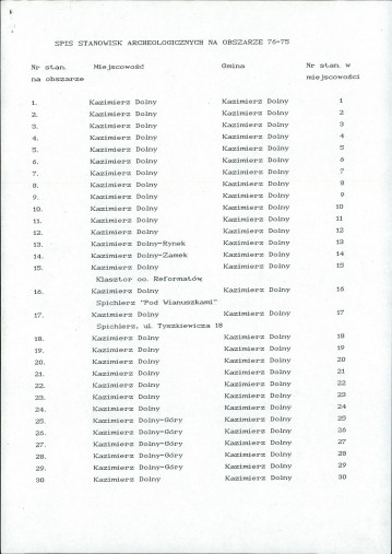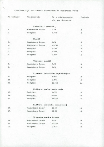 spis stanowisk wg numerów na obszarze