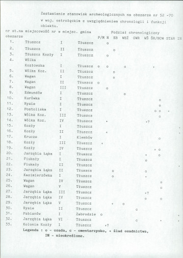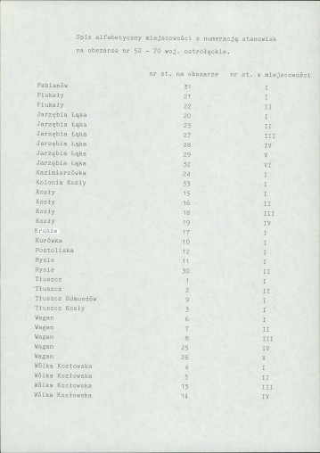 spis stanowisk wg numerów na obszarze